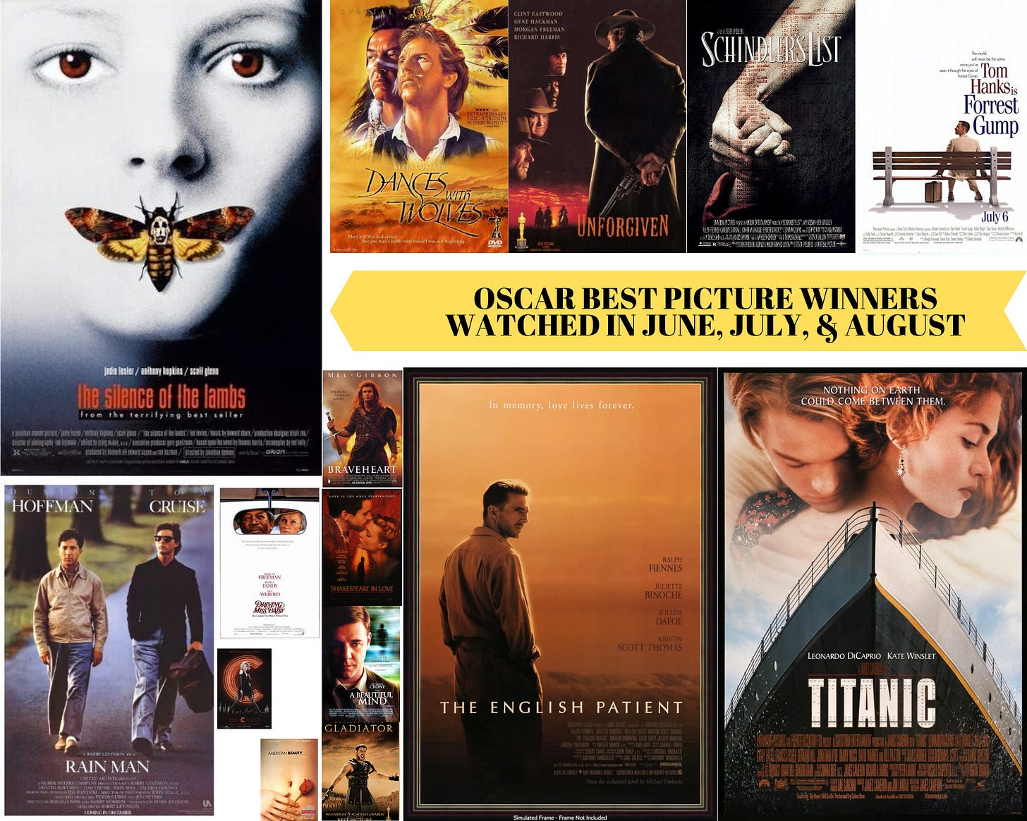 I have a newfound affection for Titanic thanks to a complete James Cameron binge for The Blank Check podcast. Silence of the Lambs, predictably, is still among my favorite movies of all time. Clint Eastwood’s Unforgiven was thrilling! Meanwhile, I really did not enjoy my time with American Beauty, Chicago, Driving Miss Daisy, or Shakespeare In Love. Looking forward to continuing this journey. I have less than 20 to go and I’ve been allowing more space in between watches so it’s gotten a lot more pleasant.