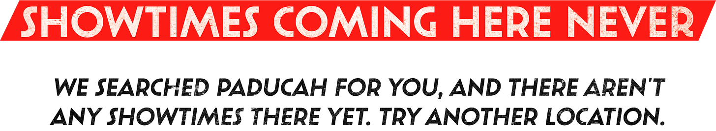There’s probably no realistic solution to something like this. Streaming services could become the go-to? You can drive to a bigger market to catch a showing? Maybe find an illicit online way of watching it? More realistically, though, you’re going to have to hurry up and wait.